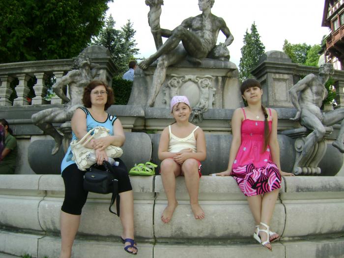 Наконец то добрались до Синаи и повернули на Пелеш. Первональный план решили изменить. Бран отменялся, так как было уже около часа дня. Поставили машину на стоянку, взяли камеру и фотоаппарат и пошли смотреть замок. В замке Пелеш я бывал раньше в 2000-м году, но он поистерся из памяти, старшая дочь Юля также была года два назад со школьной экскурсией. Билет нам стоил 40 румынских лей за двух взрослых, дети бесплатно, это только за первый этаж, второй не брали, так как цена практически удваивается, интересного там наверху мало. Билеты взяли в качестве румын, так как общались с билетершами на румынском, для иностранцев у них другие тарифы (из-за англоязычного гида).
