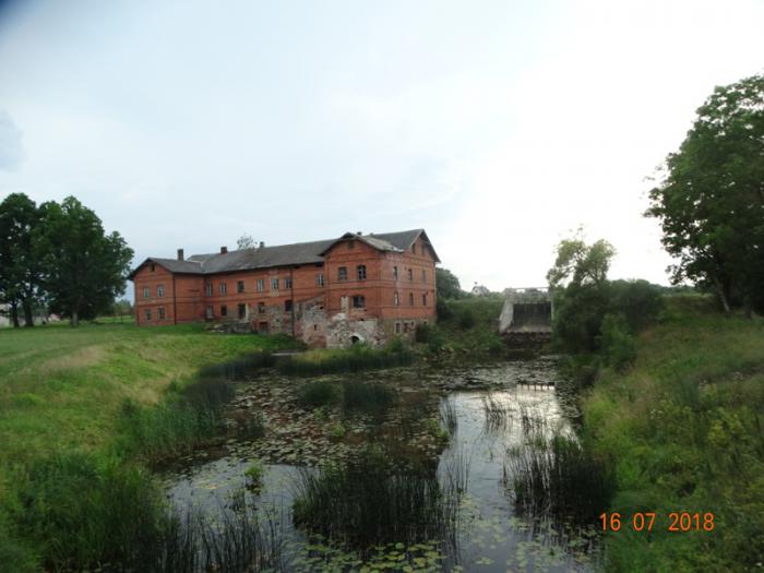 Сейчас здесь находится (если мы правильно поняли) поселковая администрация. Также есть старая мельница 1838 года постройки .