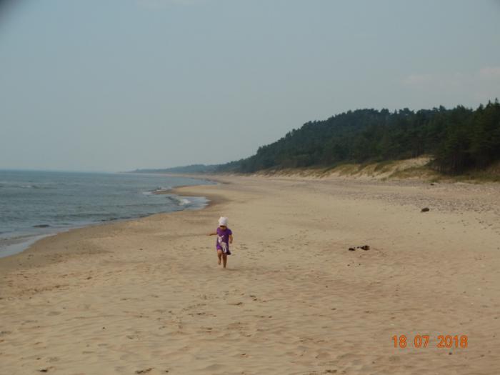 Место очень красивое. Море, многокилометровые пляжи. Сосны. Когда спустились с маяка, мы отправились к морю. Думали, что искупаемся… Но вода оказалась настолько холодной, что когда заходишь ноги сводит. Зато дети набегались по песку. Красота!