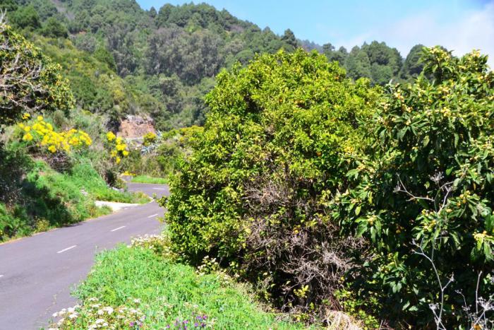 Дальше дорога круто забирается вверх, ведет через поселки с апельсиновыми деревьями и цветущими кустарниками, причем дорога постепенно и верно дичает.