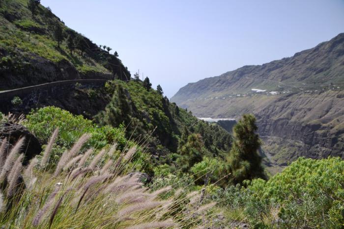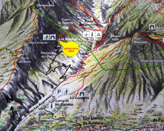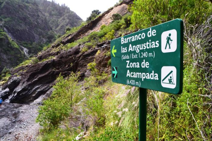 Следуя по указателям на Barranco de las Angustias, поворачиваем налево и по проложенной по склону барранки дороге доезжаем до информационной будки.