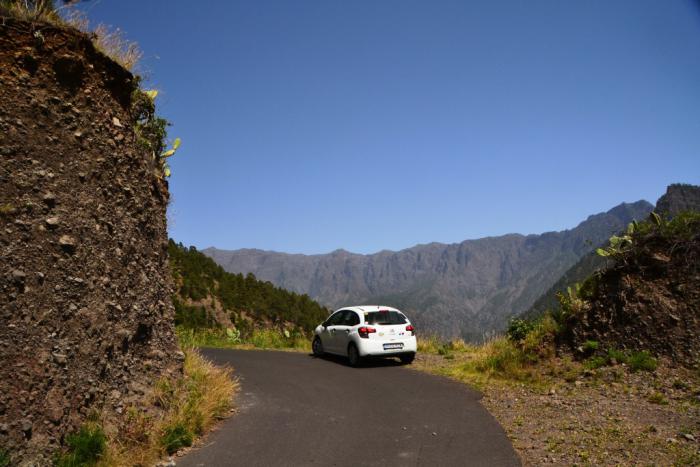 Мы вовремя припомнили, что на этом месте находится стоянка такси, поэтому в голове родился план: проделать путь по LP-214 до Los Brecitos на такси, а вернуться через кальдеру и ущелье пешком.