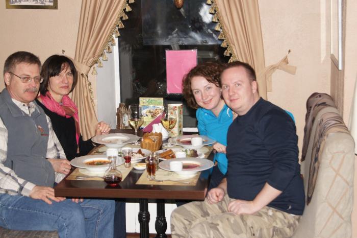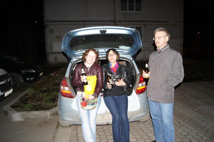 Встретили Любу и Олега и пошли ужинать. На это раз в кафе «Робинзон» на той же главной улице города. Там нам не очень понравилось. Как-то неуютно и еда так себе. Но кружки пенного подняли в честь появления на свет нового пилота/автотуриста, Пасхи и праздника труда. После, правда, мы компенсировали недостатки кафе традиционным стоянием у машины, лакомясь заречными деликатесами и попивая эстонское пиво. Ну и, конечно же, делясь впечатлением от наших разных поездок и произнося тосты за Владимира Антоновича Волкова и его родителей.