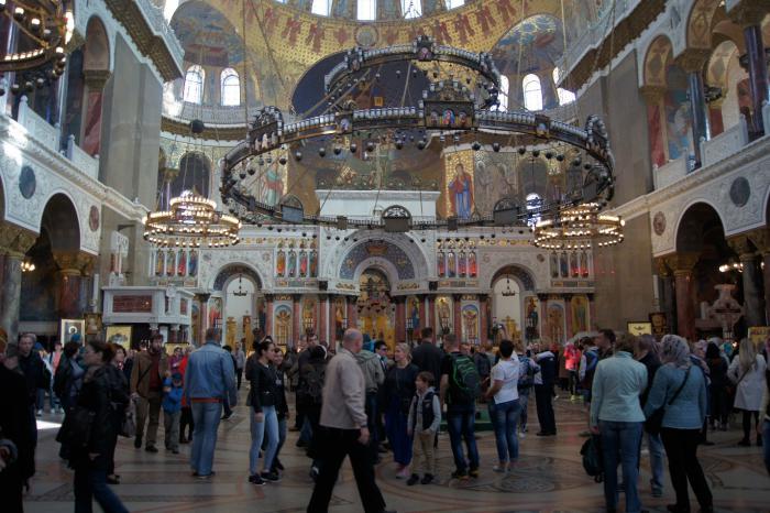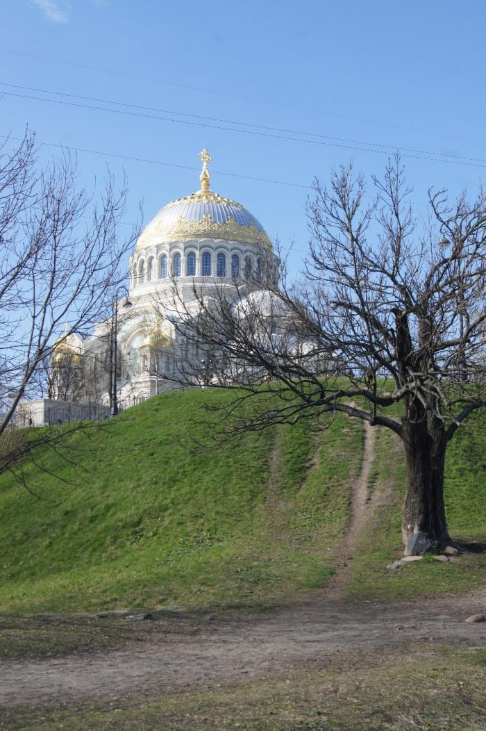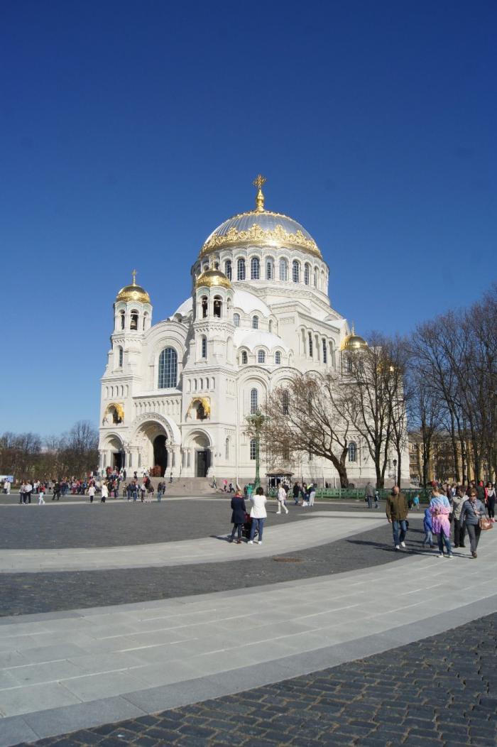 Дальше мы отправились вглубь города к Кронштадтскому морскому собору во имя Святителя Николая Чудотворца. В мае 1903 года состоялась торжественная закладка церковного здания. За прообраз архитектор взял Храм Св. Софии в Стамбуле (ранее Константинополе). Это самое высокое здание Кронштадта по сей день. В 1930 большевики разграбили собор и устроили там кинотеатр, концертный зал и т.д. Только в конце 2012 года собор был окончательно восстановлен, а в мае 2013 освещен патриархом Кириллом.