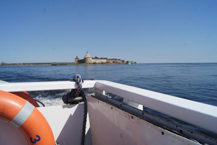 Привет, автотуристы. Вот и подошло наше автопутешествие к концу, но Ленинградская область нас не отпускала. Ещё вчера перед сном, мы приняли решение, что утром дружно поедем на Ладогу и посетим «Орешек». Сказано-сделано: время — 08:20, и мы выезжаем из отеля. Шлиссельбург расположен в 80 км от Санкт-Петербурга. Около 10:00 мы были на месте. Как раз успевали на первый корабль до крепости «Орешек». Стоимость трансфера на остров – 250 рублей туда/обратно, входной билет в крепость 250 рублей.
