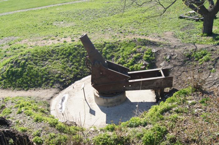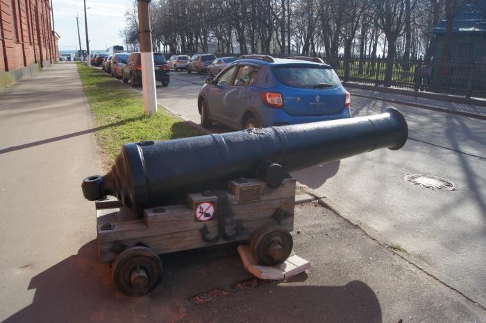 От тяжести пушки даже плитка под передними колёсами раскололась, а может ей помогли? Смотрите внимательно знак.