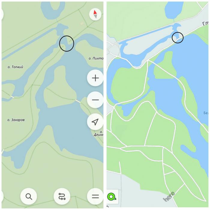 А ещё мост, который есть в программе Here maps, но нет в Яндекс картах. В реальности его не было, мы предположили, что он понтонный.