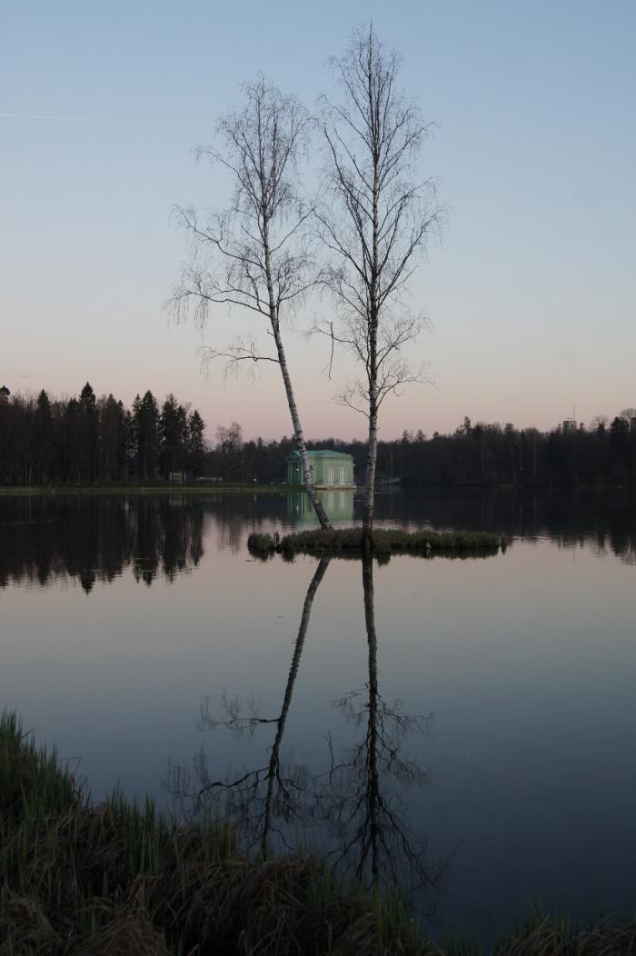 Когда-то, давным-давно, поселение расположенное там, где сейчас красуется Гатчина звалось Гаджеты. Связано это было с тем, что здесь в больших количествах выпускались первые, тогда ещё берестяные, ай-пады, ой-фоны и прочие всякие ухты-визоры. О развитии этого ремесла в поистине промышленных масштабах свидетельствует немаленький Березовый Домик, украшающий собой один из уголков Гатчинского парка и, как следствие, одну из Гошиных фотографий.