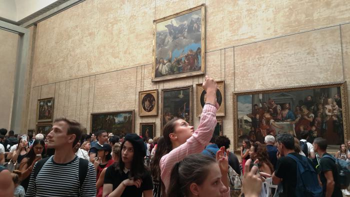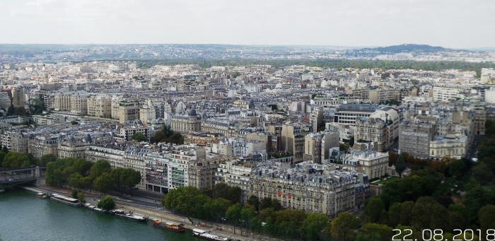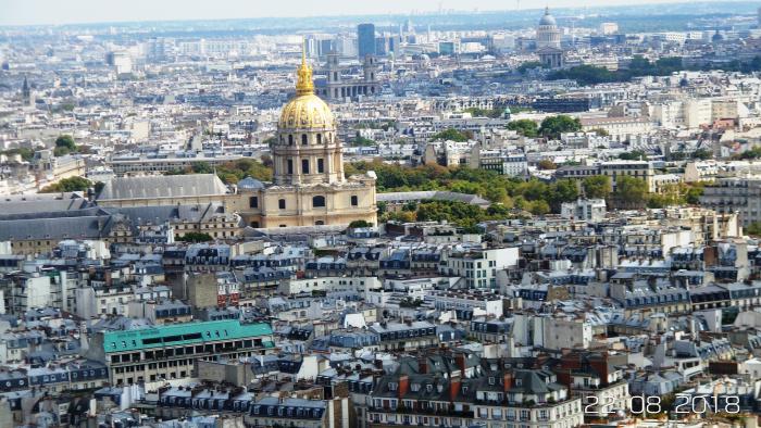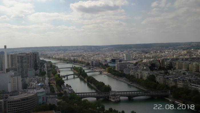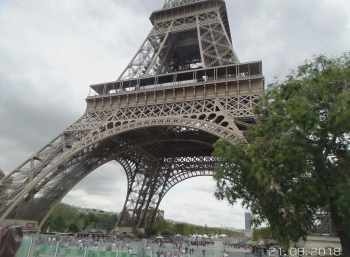 А тут я воочию посмотрел на миллионы клепок и болтов! Увидел Париж с высоты. 40 лет ждал и стремился к этому. Свершилось!!! Пошли сегодня на башню, заранее, кажется, ещё в Сербии купили билеты. Обнаружили, что досмотр при входе как в аэропорту, со сканером. А я всегда с собой ношу складной слесарный арсенал, где есть лезвие. Не подумал. Ну это было классно со стороны смотреть, как я, по совету супруги, закапывал «ножичек»!!! Всё окончилось нормально. Откопал после возвращения с башни. Супруга смеётся и снимает. Ну не «могём» мы без приключений.