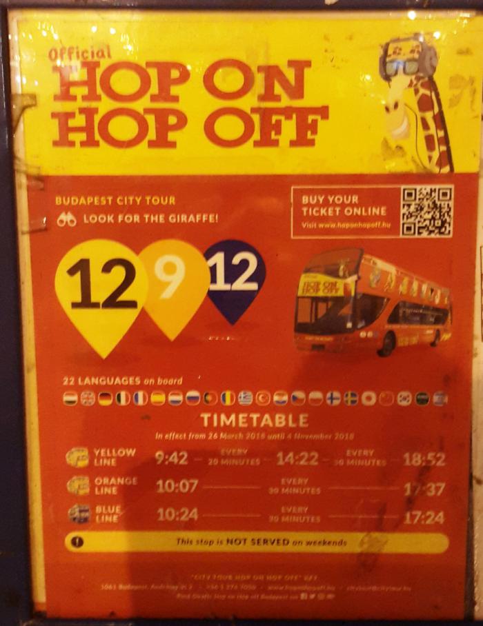 Обзорная экскурсия по Будапешту под девизом: входи-выходи. Hop On Hop Off. Двухэтажные автобусы крутятся по маршруту по всему городу, с остановками ( 23, кажется). Заходишь на любой из них, определяешь по выданной карте города, с нанесенным маршрутом и остановками, когда приобретаешь тур. В первый заход вам выдают наушники для аудигида. Садишься, подключаешь, выбираешь свой язык, перебирая флаги стран на масеньком мониторе.