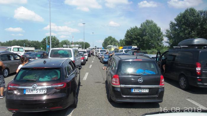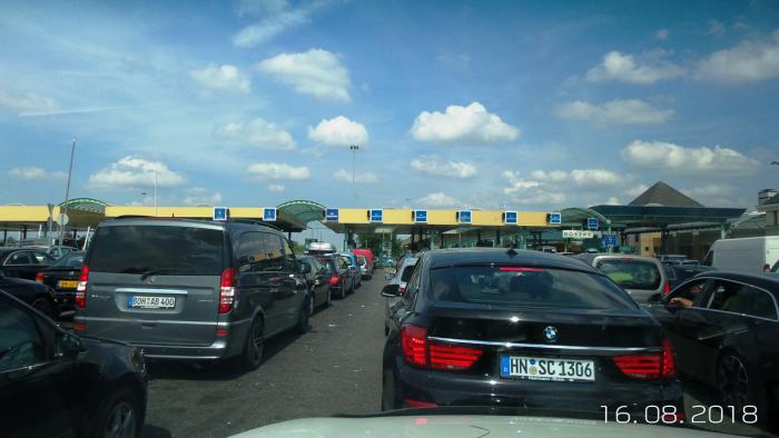 Впереди венгры. На досмотр и оформление 1 машины у венгров уходит около 6 -8 минут. Открыли даже посты на встречке. 11 постов работает. Но… Летний поток машин это что-то! Россиян мало. Очень много немцев арабского происхождения. Почти все немецкие машины заполнены людьми в паранджах и остальных атрибутах арабской жизни!