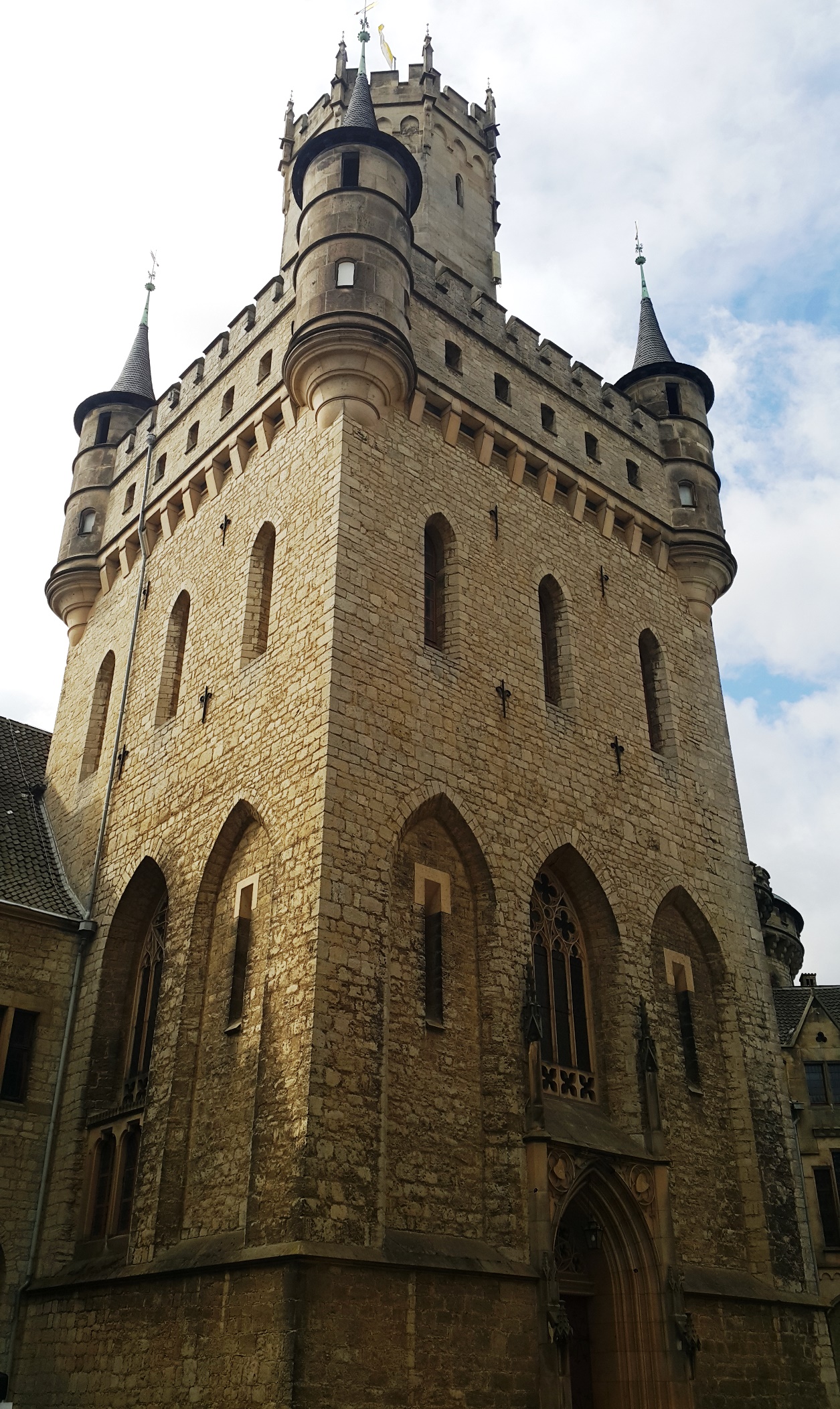 «Замок Мариенбург (нем. Schloss Marienburg) — неоготический замок, расположенный в регионе Ганновер, в земле Нижняя Саксония, в Германии. Построен в 1858—1869 годах по заказу Георга V, последнего короля Ганновера. Монарх возвёл его в качестве подарка супруге, королеве Марии, на её день рождения 14 апреля 1857 года. Замок служил летней резиденцией для королей Ганновера из дома Вельфов. В настоящее время им владеет Эрнст Август, наследный принц Ганновера.»