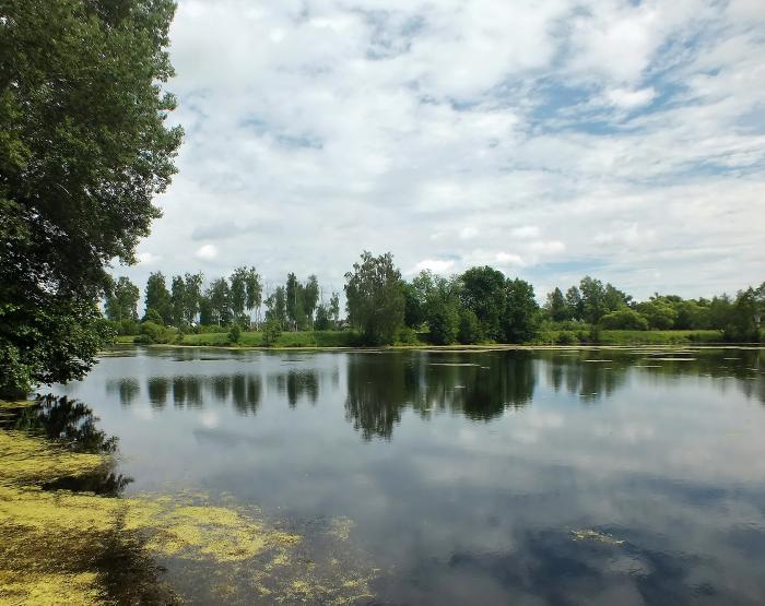Рядом поросший ряской пруд, я такие обожаю. Точнее каскад прудов.