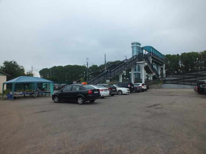 Переходим по красивому переходу через пути, смотрим на монастырь
