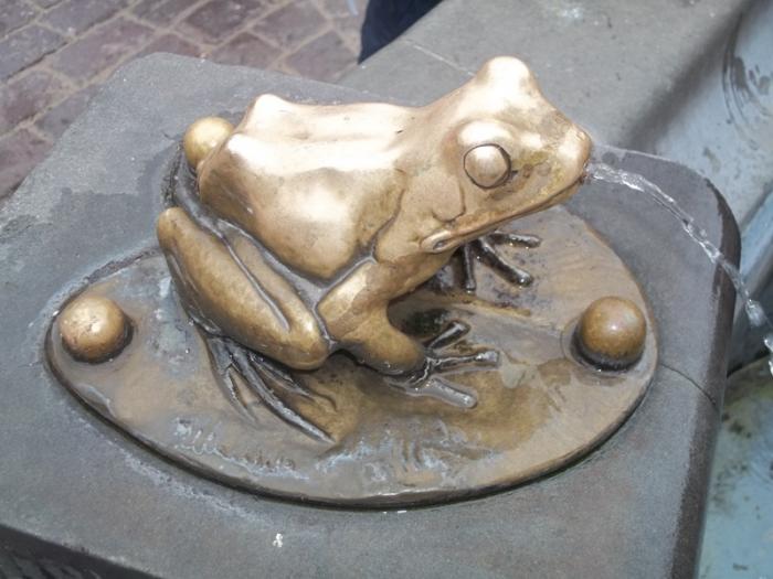 У памятника любят встречаться горожане и фотографироваться туристы, ну а детей вообще не отогнать от веселеньких лягушачьих фигурок. Городское поверье гласит, что если потереть голову или лапки лягушек, то сбудется самое заветное желание. Где-то это я уже слышала……