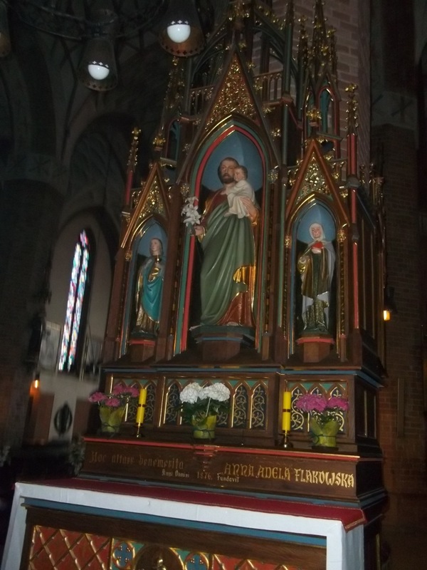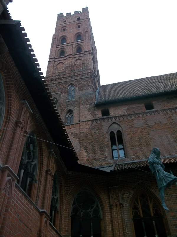 На улице Żeglarska 16 мы полюбовались собором двух Иоаннов – святого Иоанна Крестителя и Иоанна Богослова. Это самый древний и самый большой в Торуни собор с самым большим колоколом. В общем, самый-самый… Заложенный в 1270 году, он был приходским костелом старого города и, поскольку в средние века «принадлежал» городу, гильдии и братства не скупились: старались украсить его, жертвовали средства, и хоронили в склепах и часовнях своих самых достойных представителей.