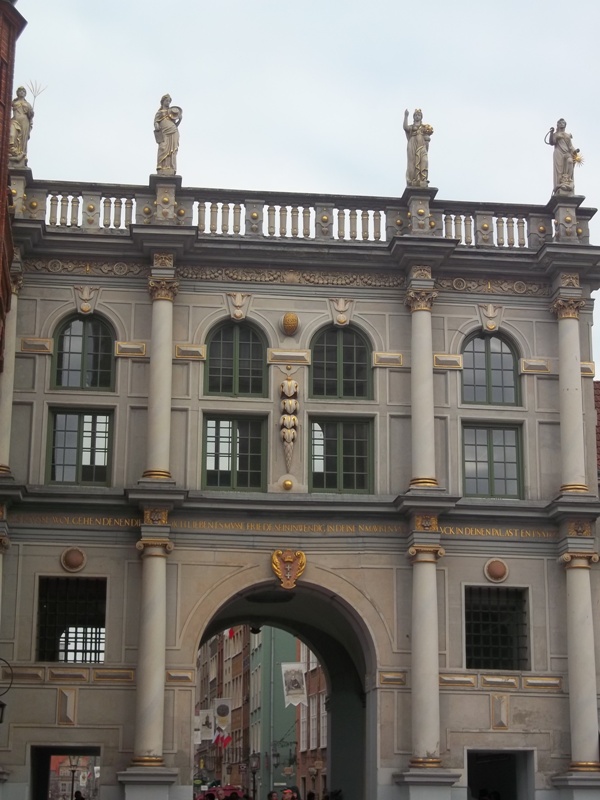 Итак, некогда определяющие начало королевского пути Высотные Ворота явились отправной точкой и нашей прогулки по Гданьску. Пройдя через Предвратный комплекс, являющийся частью укрепления средневекового города, а впоследствии служивший тюрьмой, мы оказались перед красивой триумфальной аркой — Злота Брама (Золотыми Воротами).