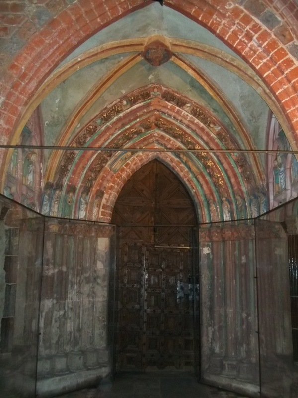 Жизнь крестоносцев делилась на «войну и церковь». Костел Пресвятой Девы Марии – главный костел среди семи костелов Мальборка. Особый интерес вызывает входной портал, так называемые Золотые ворота, рельефы на которых изображают церковные сцены и напоминают входящему о мощи Господней, одновременно воспевая славу Рыцарского ордена.