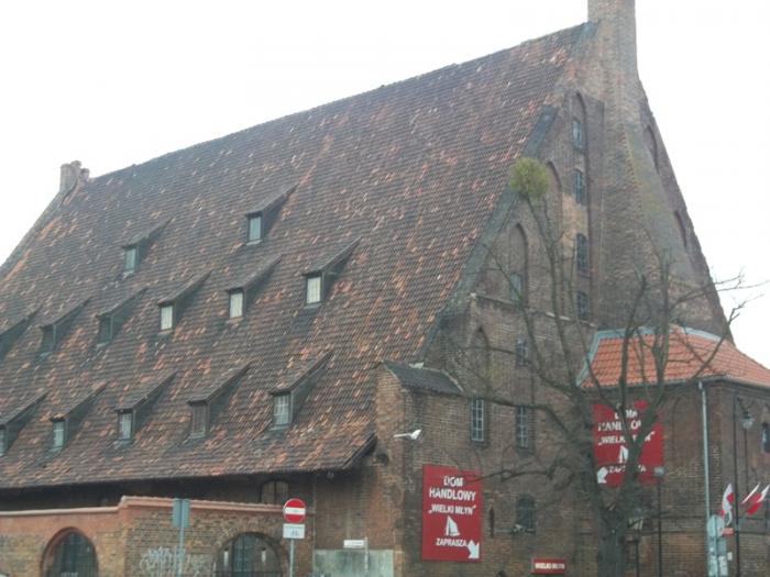 Великий Млын с огромной двускатной крышей некогда выполнял одновременно функции мельницы, амбара и пекарни. Сейчас здесь располагается торговый центр.