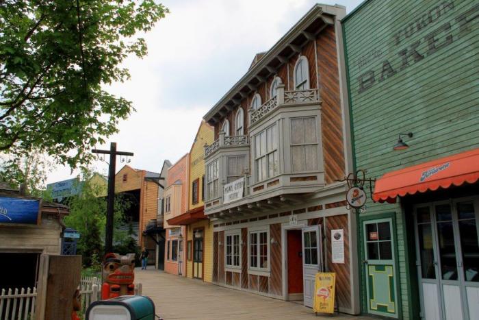В каждой зоне есть стилизованные рестораны и туалеты.