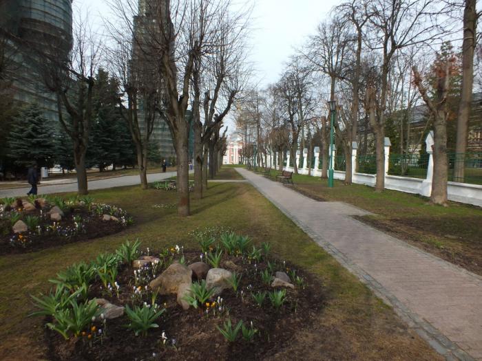 На клумбах ещё не успели распуститься тюльпаны, главным украшением были разноцветные «подснежники». Не знаю существуют ли такие, но очень похожи.