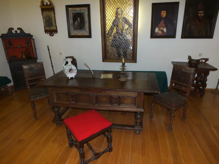 Ниже на фото мебель собранная по местным монастырям, эпохи Петра. Вполне возможно, что царь её пользовался в одном из них.