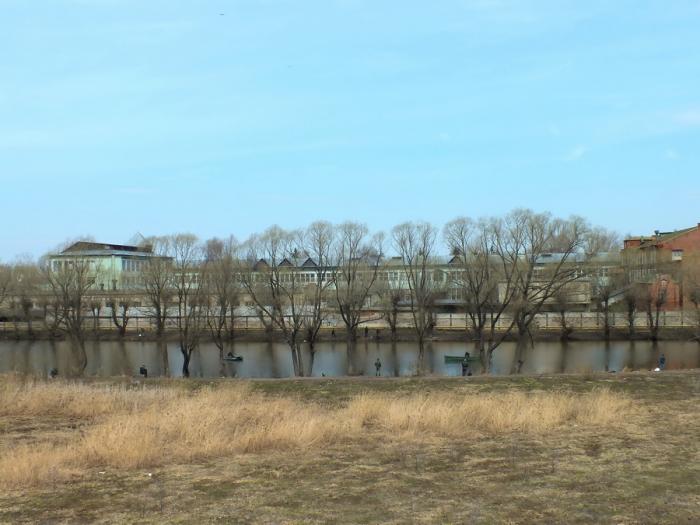 Честно говоря, его размеры меня поразили, прямо море-океан! Теперь понимаю, почему царь Петр вдохновился здесь на постройку потешного флота. Весенний паводок ещё не сошёл и набережная имеет вот такой романтический вид.