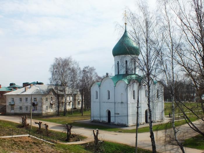 Спускаемся с земляного вала к Спасо-Преображенскому собору. В нём крестили Александра Невского, неподалёку он и родился. Собор тоже двенадцатого века