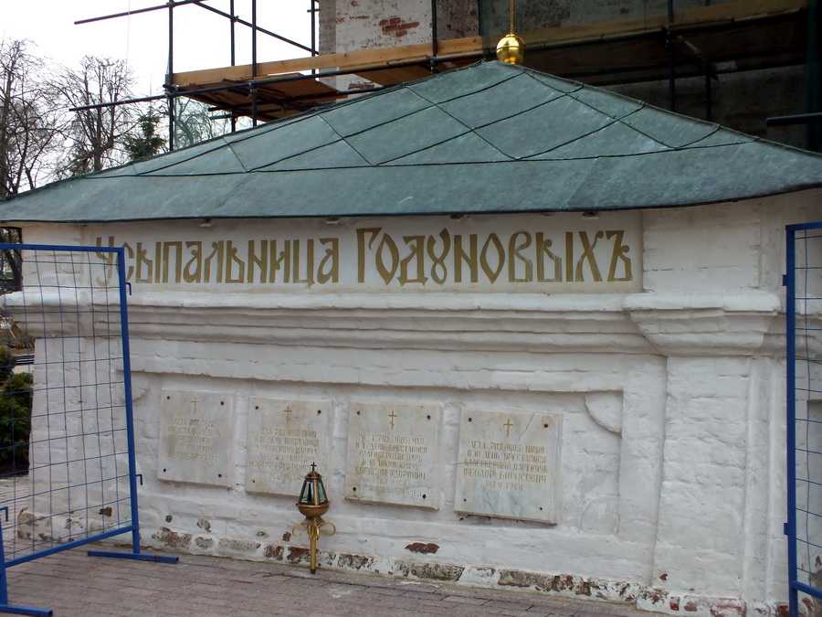 Подходим к усыпальнице Годуновых. Поставлена над гробницами царя Бориса Годунова, его супруги царицы Марии и сына, царевича Феодора, а также дочери – царевны Ксении.