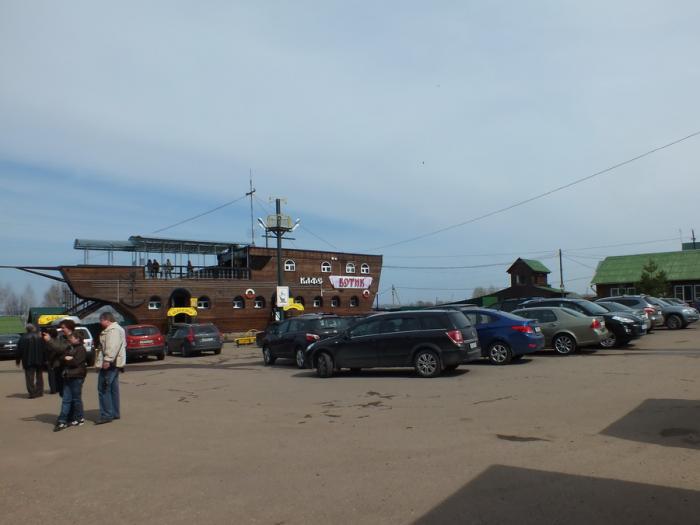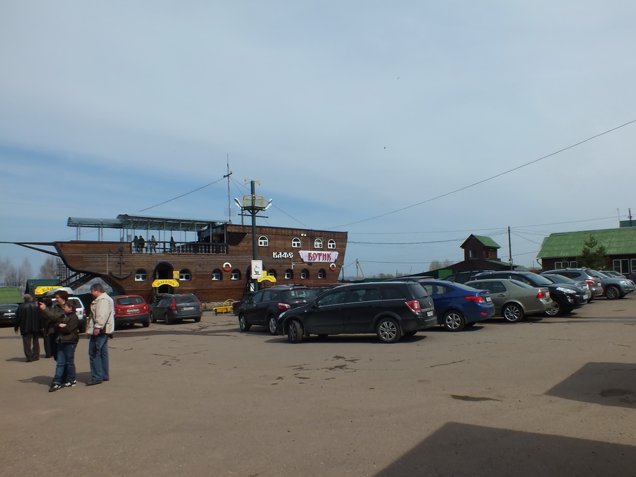 Вдоволь нагулявшись в этой части города, решаем ехать на Плещеево озеро к Ботику Петра. Это совсем рядом, минут пять на машине и вот уже паркуемся возле одноименного кафе на берегу огромного водоёма.