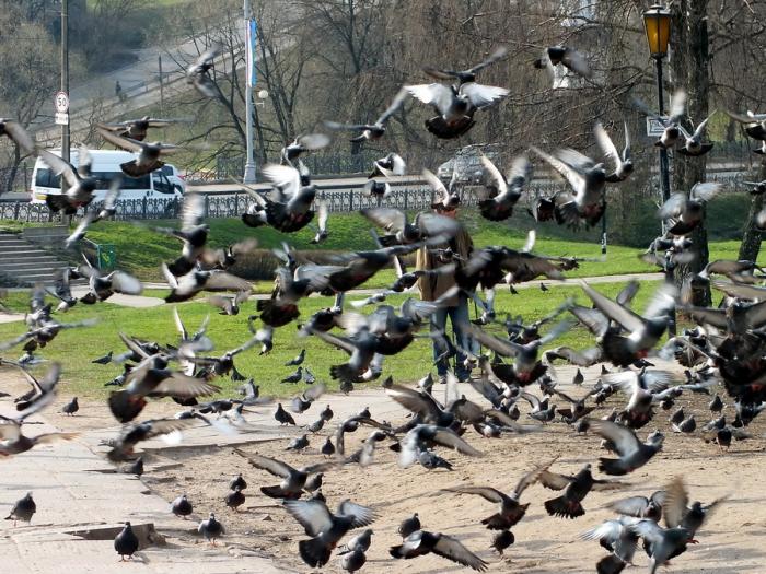 Немного постояли, перевели дух и огляделись. Очевидно здесь все подкармливают голубей, которые благодарно позируют, периодически взмывая в воздух