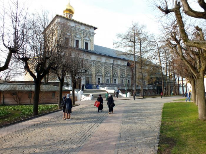 Трапезная церковь, построенная по приказу Петра Алексеевича, очень красиво смотрится. Внутри тоже понравилось, фотографировать правда не стали. Со входом вышло не совсем гладко, т.к. перепутав зашли со служебного, за что выслушали порицание от священнослужителя. Позже оказалось таких как мы много — люди не задумываясь идут через ближайшие открытые двери. Огромная палата, перекрытая сводом без промежуточных опор, предназначалась для торжественных приёмов. В зимнее время основное место для проведения служб.