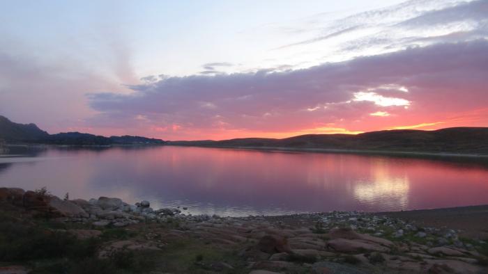 Наш лагерь у озера Пашенного в Каркаралинске располагается в очень красивом сосновом бору. Недалеко, минутах в десяти ходьбы, на самом берегу санаторий для шахтеров. Местность обустроена, распланирована и облагорожена. Все выглядит намного цивильнее, нежели на нашем Джасыбае или Сабындыколе. Дорожки выложены камнем, везде аккуратные беседки, на озере устроен солидный причал, возле которого стайками резвятся дикие утки. Постоять бы здесь лагерем с недельку, побродить по окрестным горам…