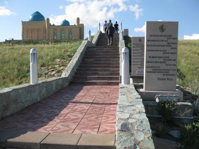 С вершины одной из сопок открывается вид на красивое сооружение с небесно-голубыми куполами. Это мавзолей Машхур-Жусупа Копеева, известного казахского поэта, мыслителя и историка. Он почитается в народе святым и место его упокоения в Баянаульском районе посещают паломники, люди искренне верят, что прикосновение к надгробию приносит избавление от болезней и духовное исцеление. Имя Машхур-Жусупа, кстати сказать, носит и центральная мечеть города Павлодара.