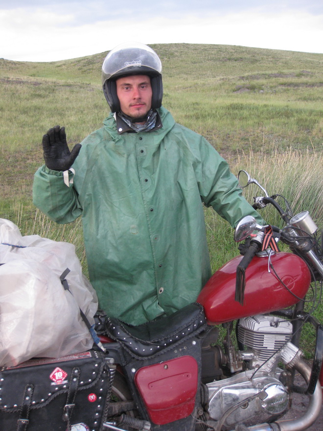 Утром этого дня мы приводили себя в божеский вид. Брились, мыли машины и мотоциклы. Сын у меня заскучал, по его мнению, все интересное уже кончилось. Всю дорогу он крепился, собирая себя в кулак. У него сильная аллергия на полынь, а конец июля и август для такого рода аллергиков всегда мучителен. К тому же плохо выспались из-за комаров (мази и репелленты помогают ненадолго), да еще ночью долго собиралась над нами гроза. Погромыхала громом, посверкала молниями, но слава богу, дождик пролился не особенно сильный. Мы опять ночевали на тенте, и было немного сыровато. В общем, Илья с утра был явно не в настроении, с опухшими глазами и, как обычно в последние дни, заложенным носом.