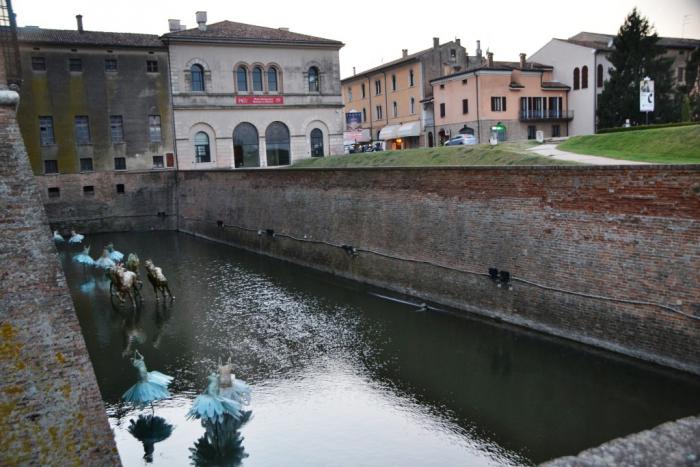 Я отбежала к самой дороге, проложенной по берегу озера, чтобы вместить в кадр это масштабное сооружение уже, как мы поняли, традиционной для Мантуи «веселенькой» расцветочки: