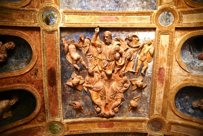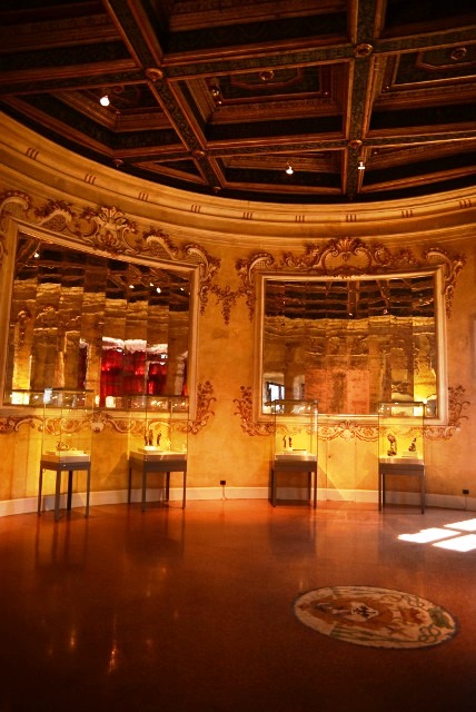 Положа руку на сердце, эта часть экспозиции меня не сильно впечатлила, возможно, против сыграла некоторая заорганизованность процесса. Да и вообще, в Большом дворце — части замка, отстроенной в эпоху Возрождения, — росписи стен и особенно потолков ничуть не менее впечатляющи: