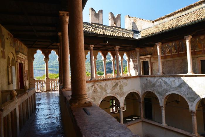 Входной билет – 10 евро с человека, еще 2 евро – отдельный билет на вход в Орлиную башню (TORRE AQUILA) с фресками «Времена года». Берем и того, и другого. Оглядываемся: