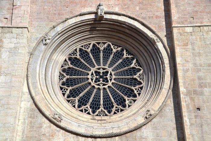 Западный фасад собора крестообразной формы – сдержанный и предельно лаконичный, ажурное окно-розетка – едва ли не единственное его украшение. Среди жителей Тренто было распространено романтичное название этого окна – «колесо фортуны»: