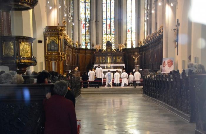 Внутрь собора мы не стали заходить, но сквозь стекло полюбопытствовали на проходящее богослужение: