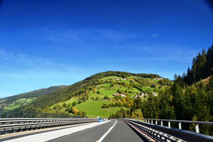 Путь домой – неблизкий, 2430 километров, решили разбить на три дня, с заездом в аутлет Парндорф. Выехали относительно рано – в 10 утра, начало маршрута в ущерб времени проехали по красивейшим местным дорогам, я не убирала фотоаппарат и без конца щелкала на ходу в открытое окно. Поскольку изначально мы сделали выбор в пользу бесплатной живописности, то очень местные дороги в Тироле в некоторые моменты заставляли лично меня немало поволноваться: