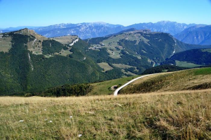 В общем, мы уже пожалели, что не отправились на Монте Бальдо с другой стороны горы – на своем автомобиле. В этом случае пришлось бы с последней возможной парковки подняться вверх по пешей тропе. Вон оттуда – сюда: