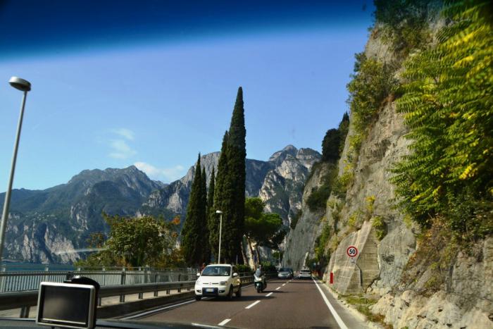В 2013 году мы уже проехали по ней от начала на севере озера до конца на юге, порядка 60 километров от Torbole до Peschiera и Дезенцано-дель-Гарда, несмотря на нетуристический сезон начала марта, заняли два с половиной часа (правда, с остановками на фотографирование).