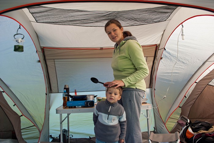 В палатке высыпались прекрасно. Главная проблема — это раскиданные повсюду вещи и их дальнейший сбор перед отправлением.