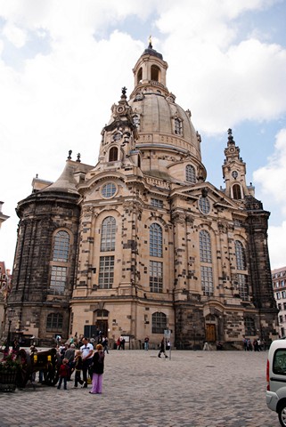 Первое, что мы увидели – это площадь вокруг Фрауэнкирхе. Главной церкви Дрездена. Саму Фрауэнкирхе отстроили заново в 2005 году. Возможно, темные камни на фасаде – это остатки прежней церкви.