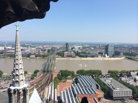 Потом пошли на смотровую площадку которая находится в офисном здании KoelnTriangl на другой стороне реки. Вход около 5 евро за двоих. С нее открывается замечательный вид на город.