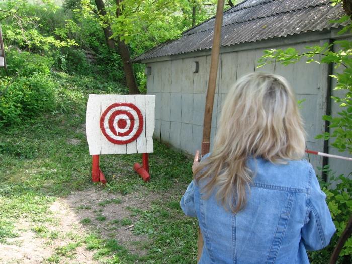 Еще на трассе обогнали автобус со школьниками, как оказалось ехавшими в Дивногорье к началу первой экскурсии в 10-00ч. и ожидая этот самый автобус, мы решили освоить навыки обращения с древним оружием. Как выяснилось только сейчас, при написании данного отчета, тогда я с экономил (зажал для Лены) 20 рублей, т.к. увлекшись, оплатил лишь свои выстрелы из лука?! :-))))))))))))