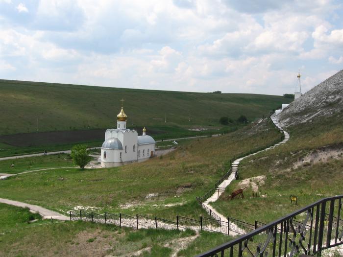 Внутри меловой церкви достаточно прохладно, всё освещается свечами и ЗАПРЕЩЕНА любая видео или фотосъемка. Главная святыня – «Костомаровская» икона Божией Матери, подаренная монастырю императором Александром I, была прострелена богоборцами в лихие годы.