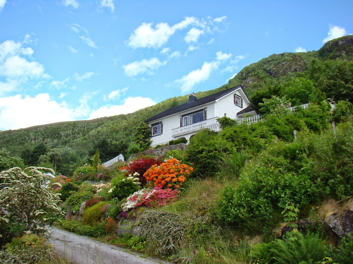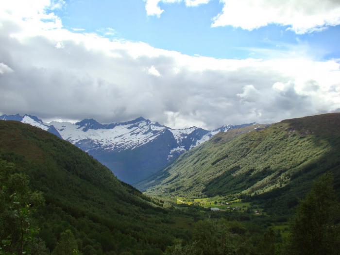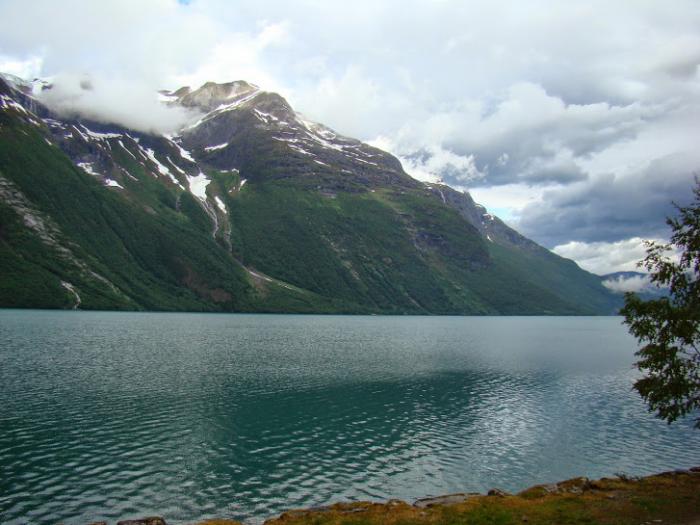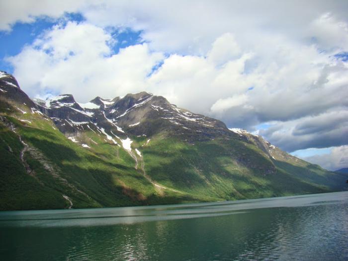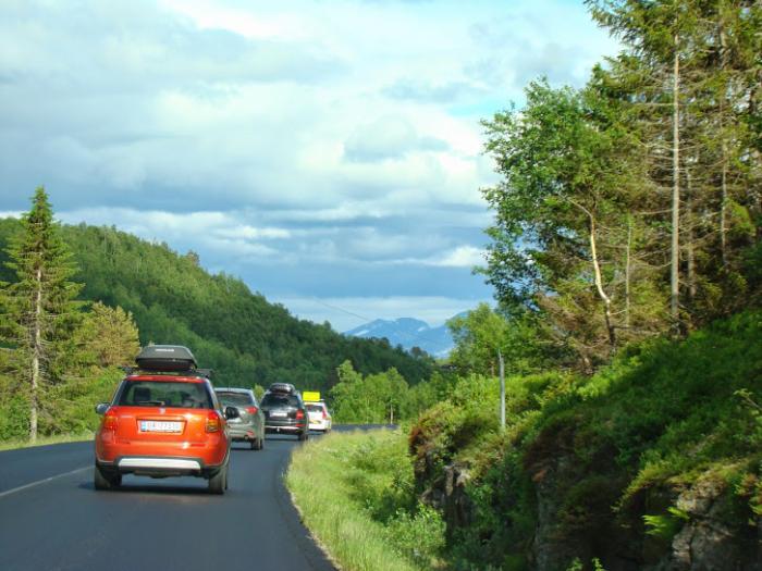 Итак, погода установилась, поехали по Е39. По пути меня по-прежнему восхищало то, как норвежцы, в полную силу используя плюсы климата, умеют украсить свой дом, посёлок. То фигурку поставят, то цветочки в чём нибудь посадят, то интересно оформят почтовые ящики, в общем, всего не перечислить. Вроде бы мелочь – а создаёт определённое настроение и, при этом, не вызывает ощущения нелепицы, как зачастую бывает у нас на усадьбах и дачах. Наверное, это прививается постоянным проживанием в красивой местности, потому что на равнинной, можно сказать банальной Норвегии, мы уже не видели этих особенностей – и ящики могут быть жестяными полуразвалившимися, и клумбы так себе или отсутствуют вовсе. В общем – такая вот теория зависимости желания украшать жизнь и наличие вкуса от красоты местности, в которой живёшь!