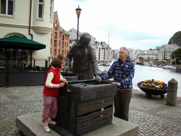 Может из знатоков кто-нибудь знает, кто стал прототипом этого удивительного монумента. Мне не удалось найти полезной информации. Среди памятников Олесунна он часто фигурирует на фотографиях, но разъяснений по этому поводу мне не встретилось.